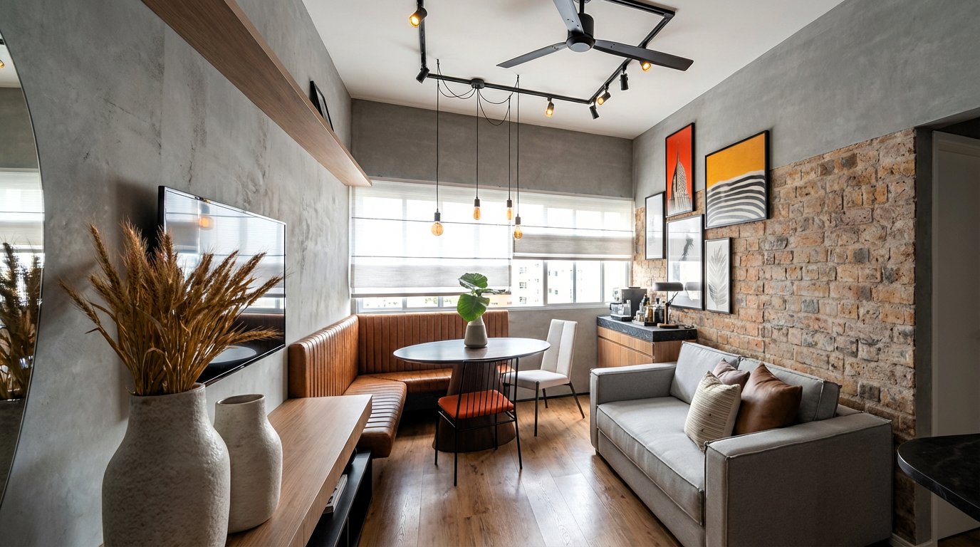 Apartamento de estilo industrial, pensado para um casal jovem. Aqui, nada é escondido. Tudo é assumido. As imperfeições viram estética. Urbano, prático e gigante na atitude.